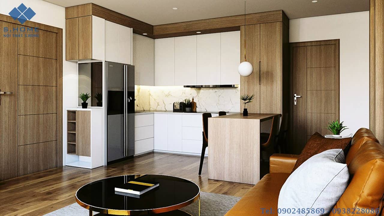 Thiết Kế Nội Thất Phòng Khách Liền Bếp Phong Cách Hiện Đại
