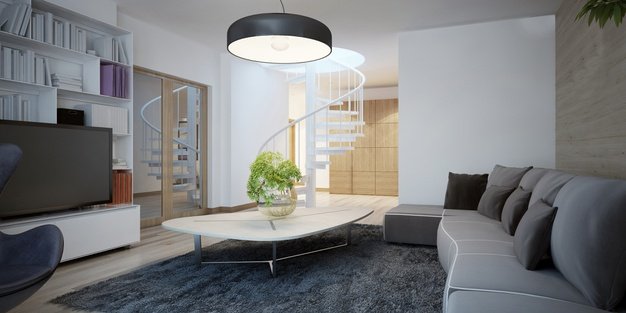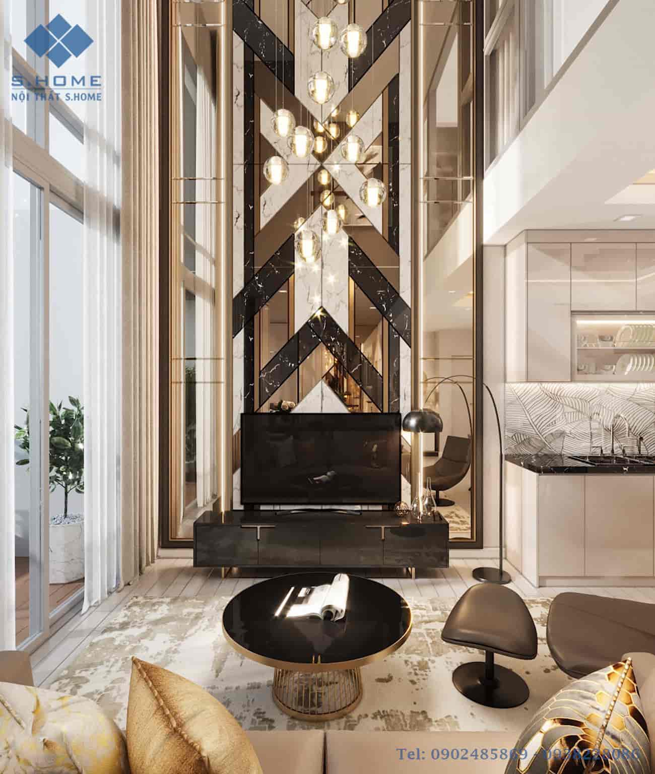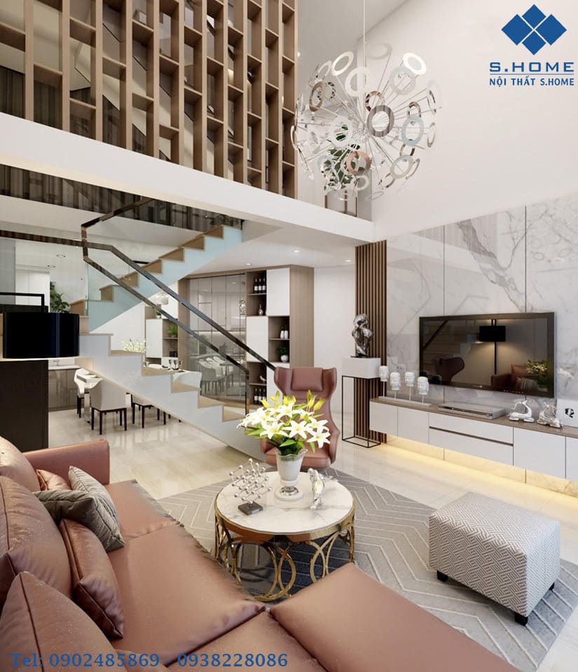 Nội Thất Phòng Khách Thông Tầng Liền Bếp Phong Cách Hiện Đại